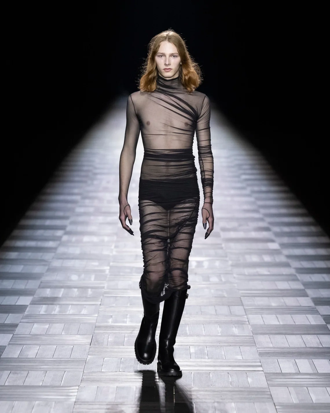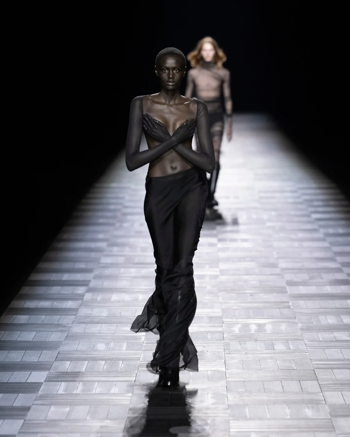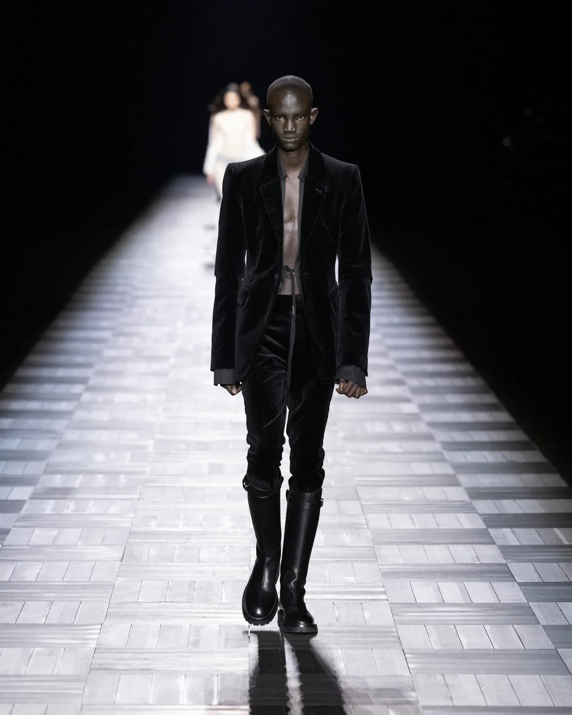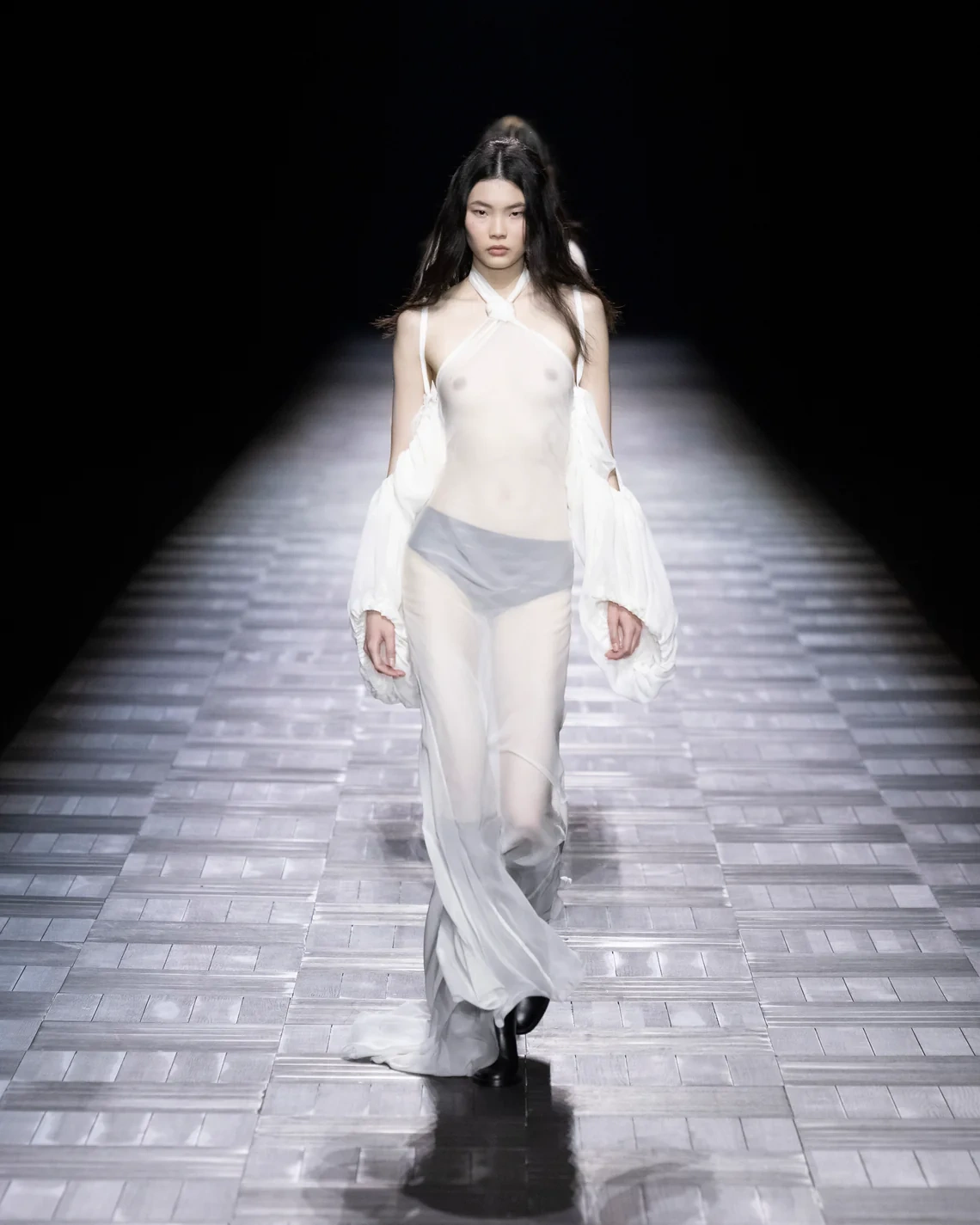 The collection functioned as a statement of intent rather than innovation. De Saint Sernin demonstrated fluency in Demeulemeester's vocabulary while inserting his own sensibility through more exposed skin and body-conscious cuts. Whether this archival excavation can sustain future collections remains the question.