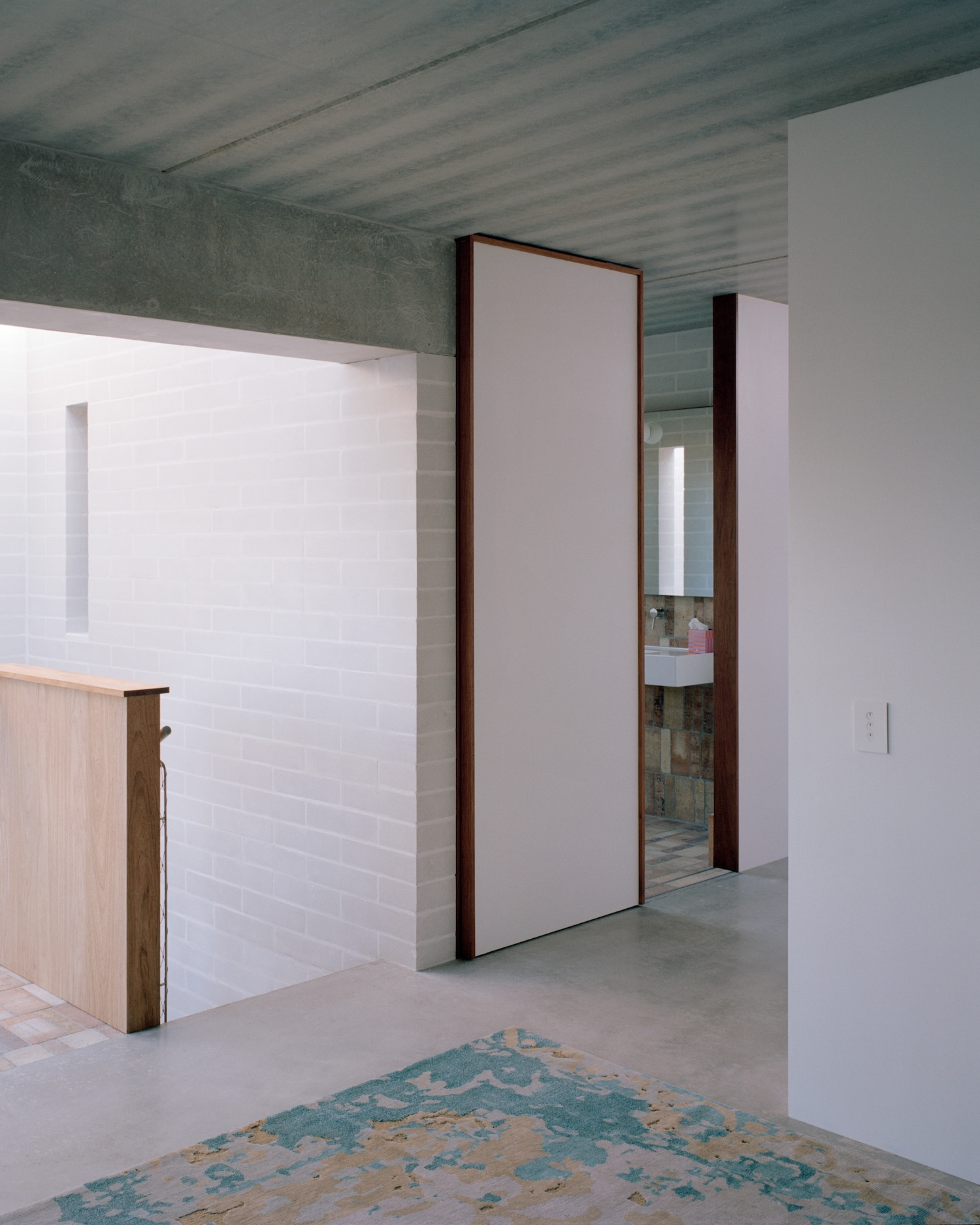 The rest of the house continues this spirit of reuse: recycled hardwood on the ceilings, ballast repurposed from old roofs, no synthetic finishes. Even the energy systems carry the idea forward, with solar panels and rainwater collection reducing the home’s footprint.