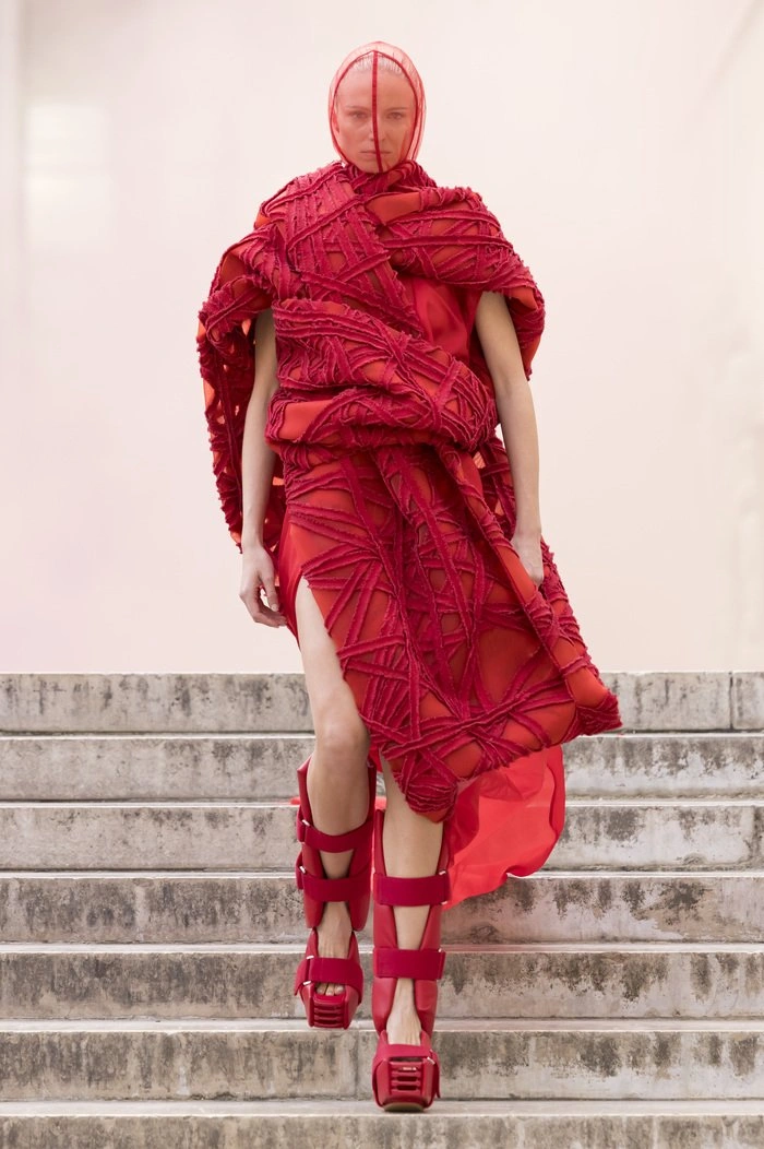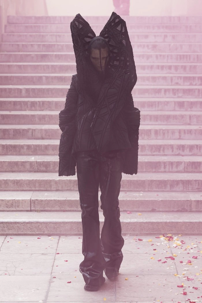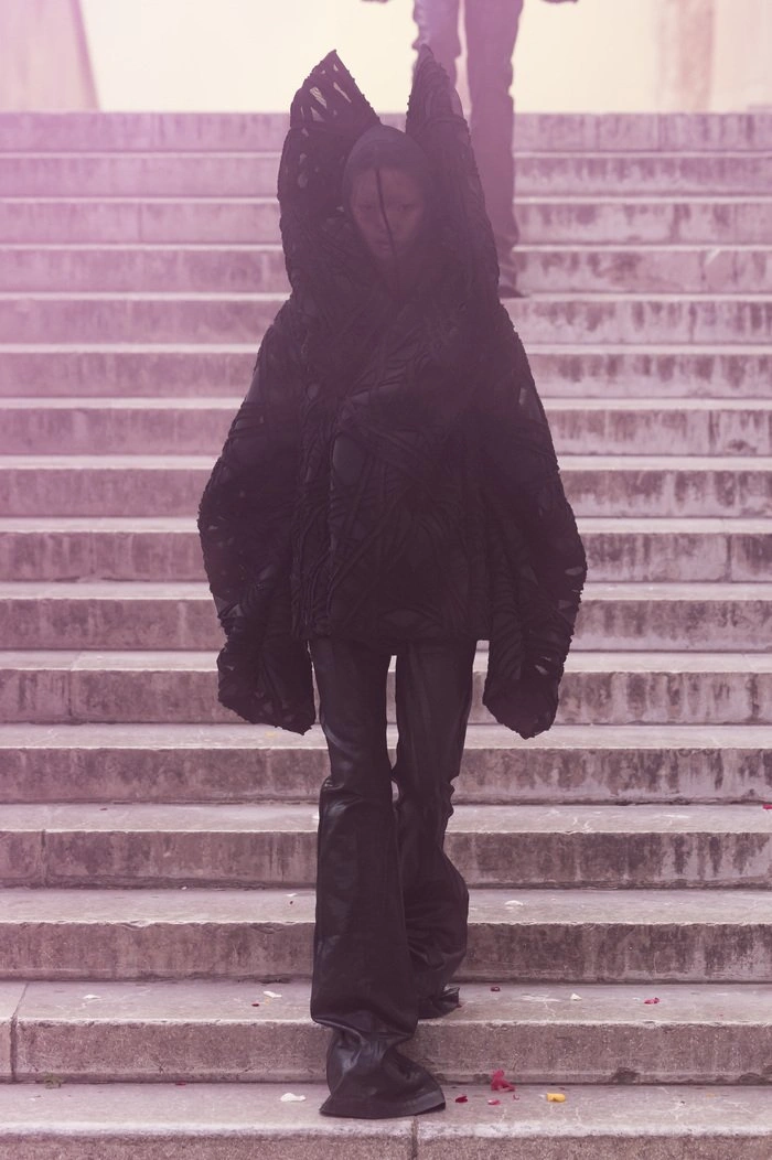 Rick Owens' S/S26 menswear collection pushes fashion boundaries with avant-garde silhouettes and architectural construction.