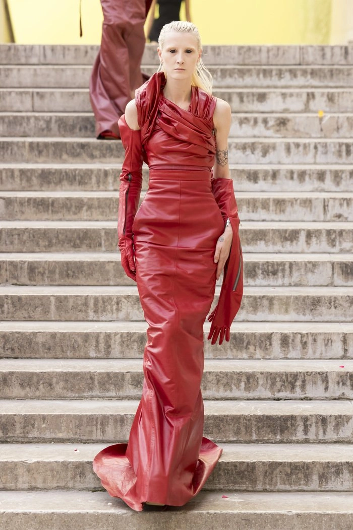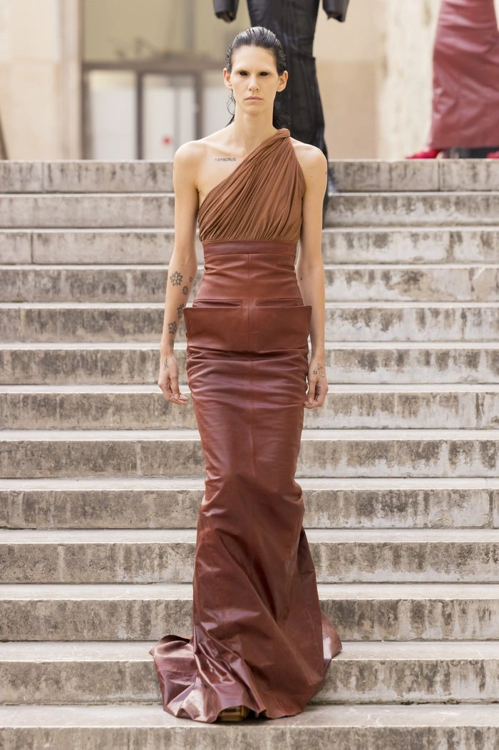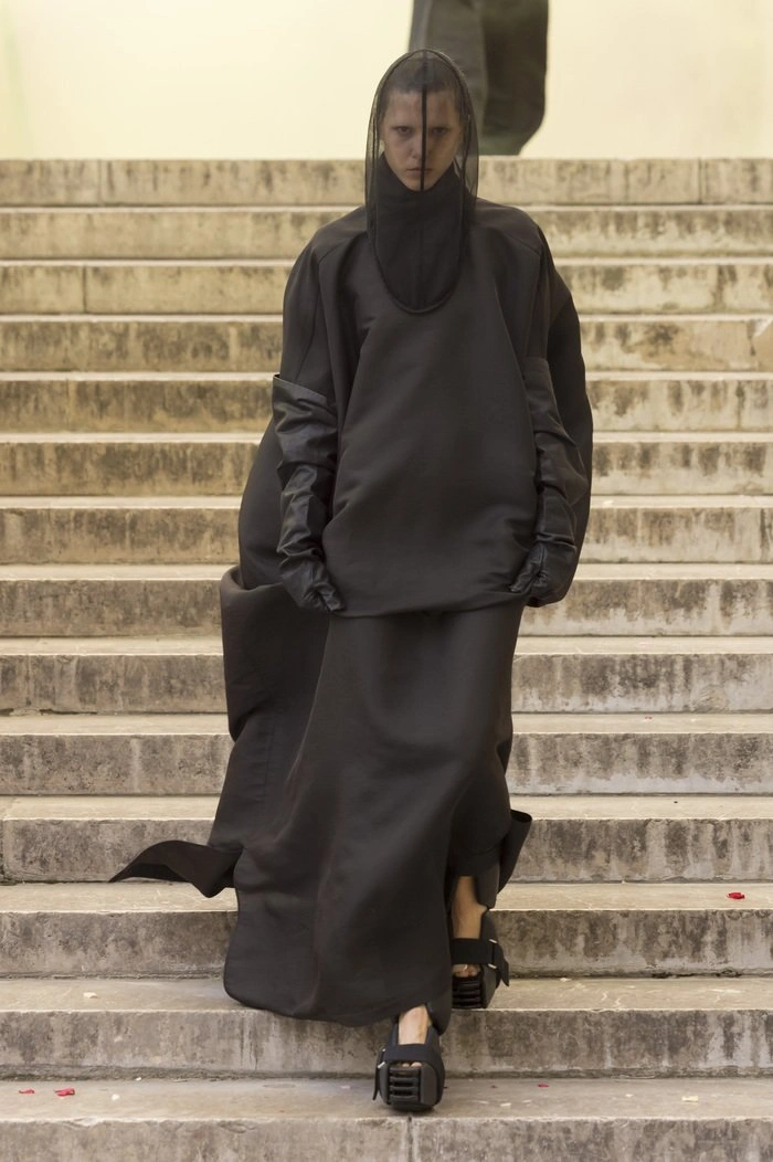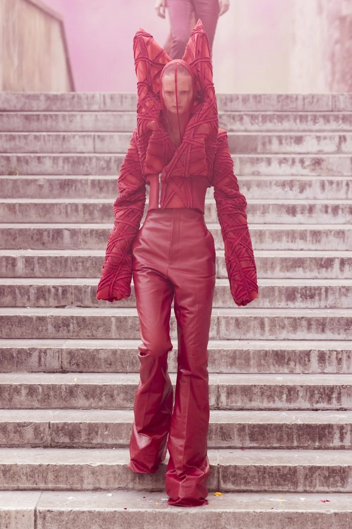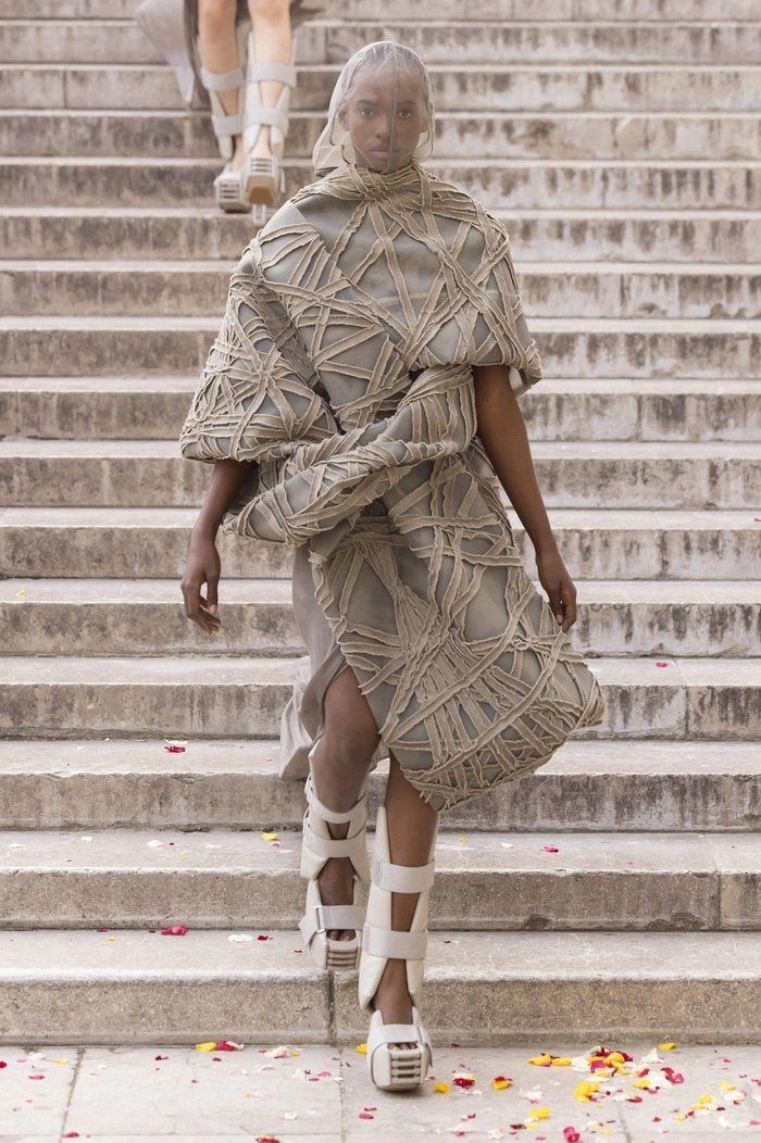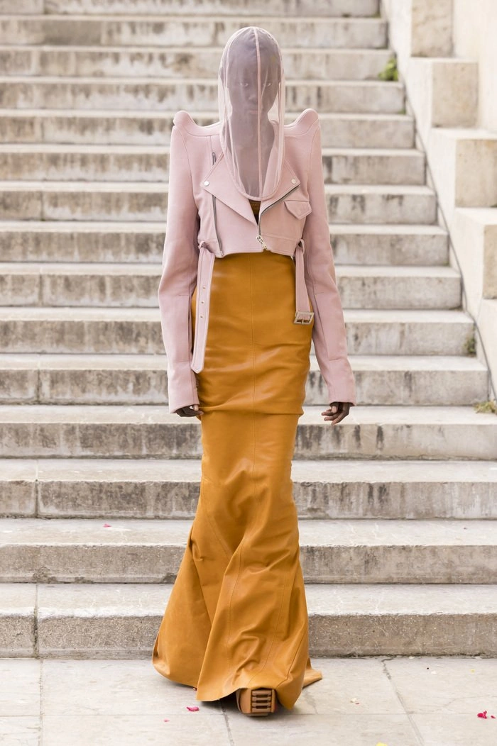 Lido marked a shift in Owens' approach. While maintaining his dark aesthetic vocabulary, the collection incorporated subtle color: beige, pale pink, desert orange alongside the dominant black. The transparency and lightness of materials suggested vulnerability beneath the armor of his typical silhouettes. This was Owens processing global uncertainty through fashion, proposing elegance as resistance.
