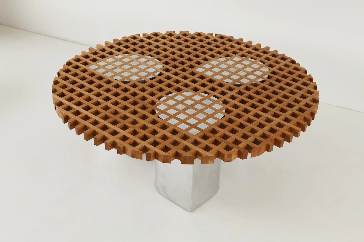 The result is a table that feels graphic yet tactile, a balance of historical reference and contemporary interpretation, where structure becomes pattern and pattern becomes structure.